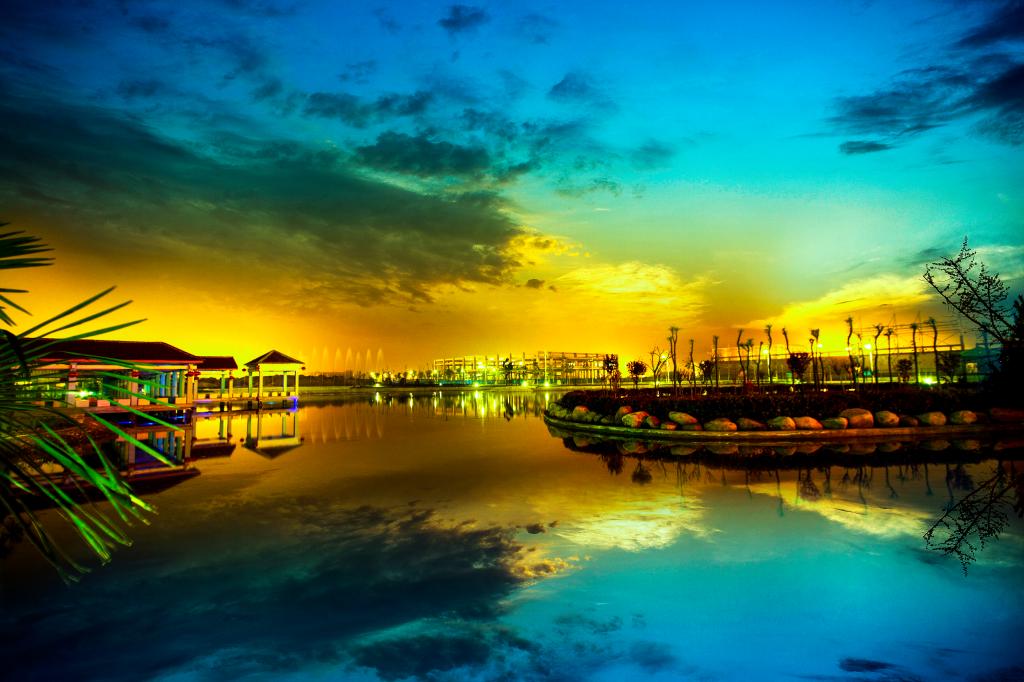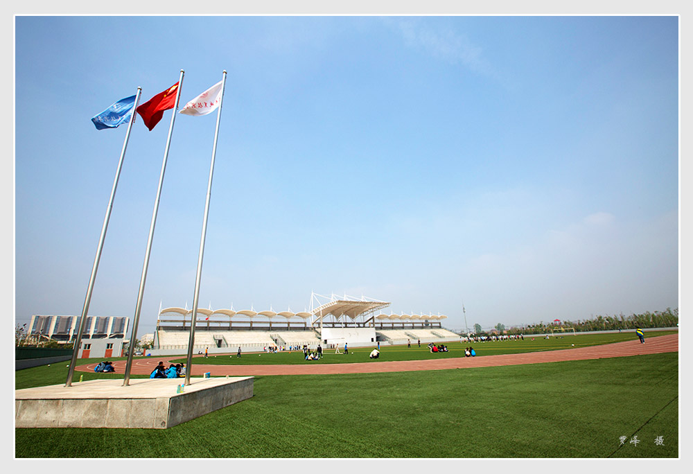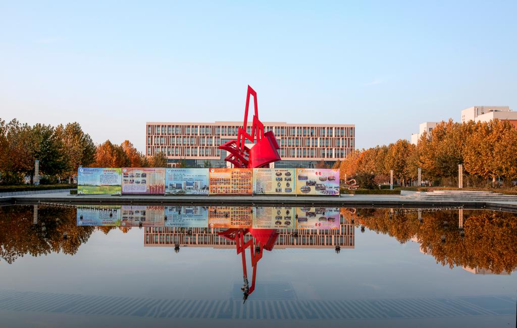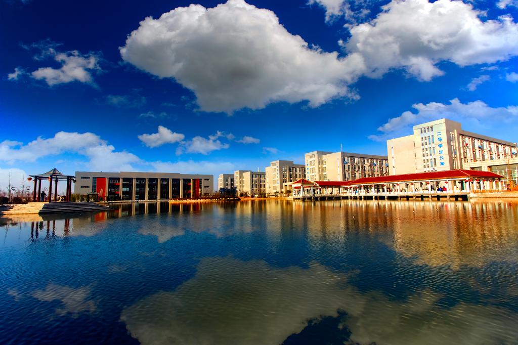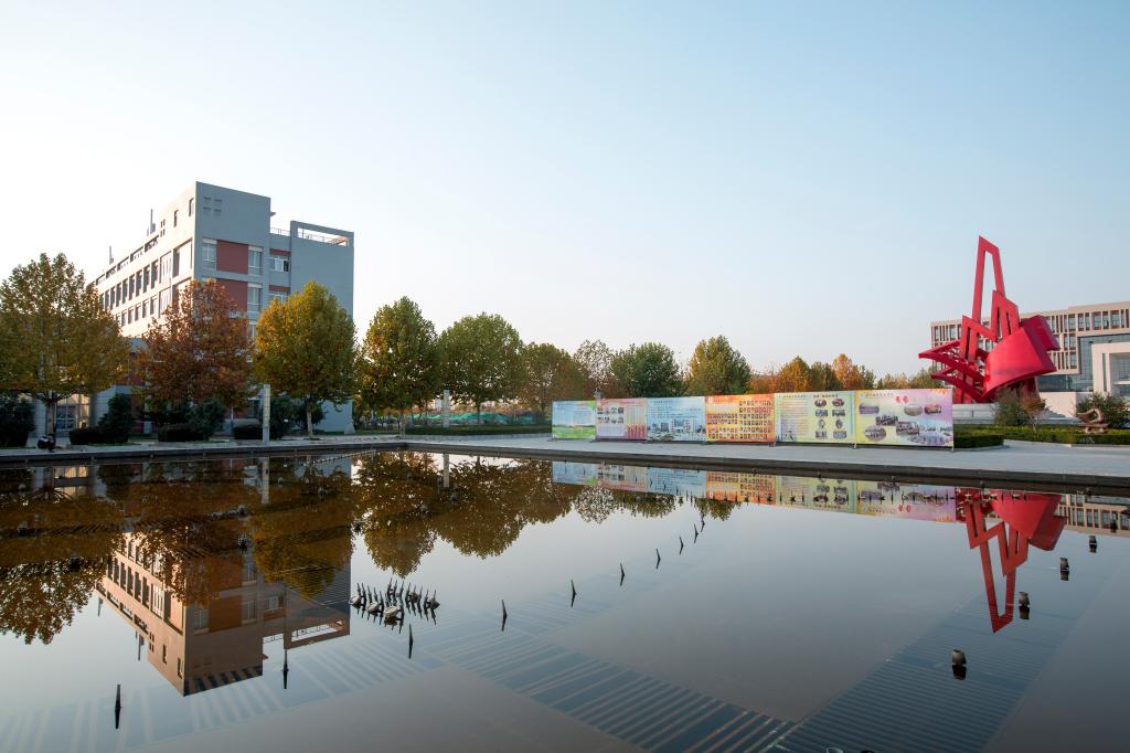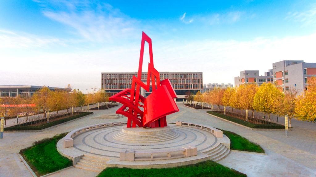人工湖 面积1.8万平方米,湖区4个小亭,取“四校合一”之意,十个小型建筑,含一百个文化元素,寓意“十年树木,百年树人”